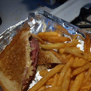 Served with a pickle wedge and french fries