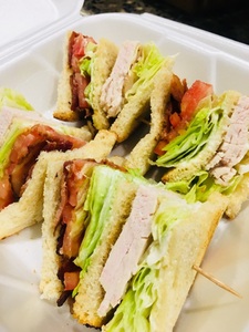 Turkey and Vegetarian Burgers. Served with a pickle wedge and french fries