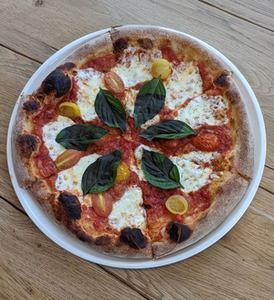 Add-on sausage ($3), prosciutto ($4), pepperoni ($4), blue cheese ($5), shrimp ($9). Substitute vegan mozzarella & cauliflower crust available.